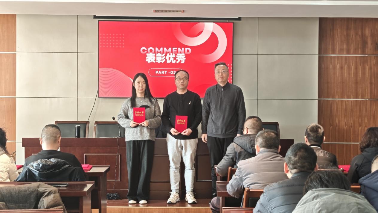 表彰树标杆,榜样引前行。会上,副总经理肖可为同志宣读了2025年度表彰决定,对表现突出的先进予以表彰。颁奖环节中,颁奖嘉宾为获奖集体与个人颁发奖状,一张张奖状既是荣誉的见证,更是对实干与付出的肯定。获奖代表依次上台分享工作经验与感悟,他们立足岗位、求真务实的工作态度,攻坚克难、奋勇争先的奋斗精神,深深感染了现场每一位员工。领导的精准点评更是让分享内容更有深度、更有启发,为全体员工树立了可学、可做、可追的榜样。